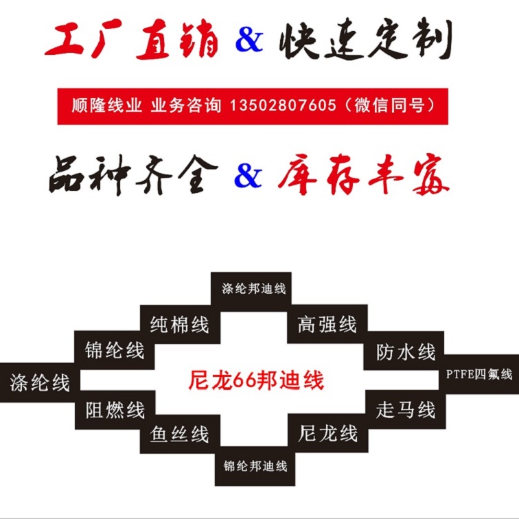 常 備 型 號 :60#(150D/3); 40#(210D/2); 30#(210D/3) ; 25#(250D/3) ;20#(280D/3) ; 10#(420D/3) ; 5#(630D/3) ; 0#(840D/3) ; 15股(1050D/3) ; 18股(1260D/3)