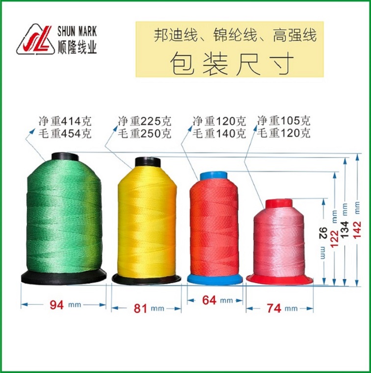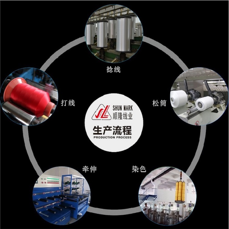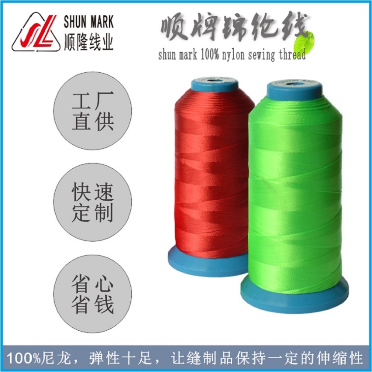 錦綸縫紉線的工藝:采用尼龍(錦綸)單絲拼線,低溫染色,保證縫紉線足夠的延伸率和回彈性。