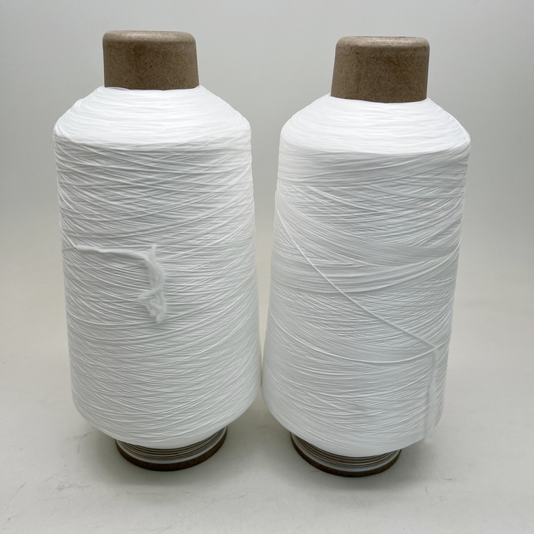 高彈絲拷邊線應(yīng)用:高彈絲多用于編制彈性織物如襪子的織造;制衣及配合彈性織物做人字邊緣拷克用途。