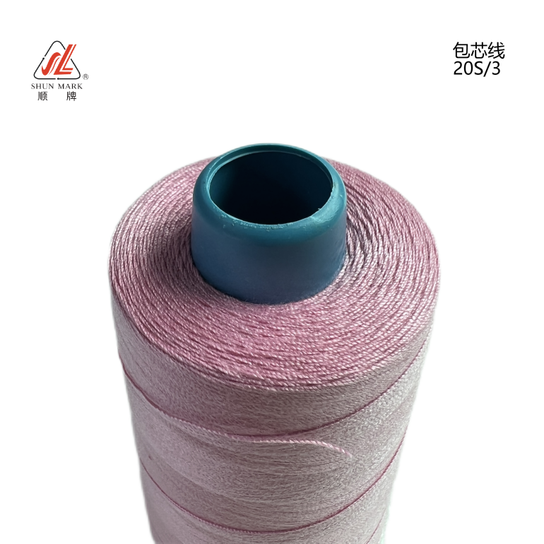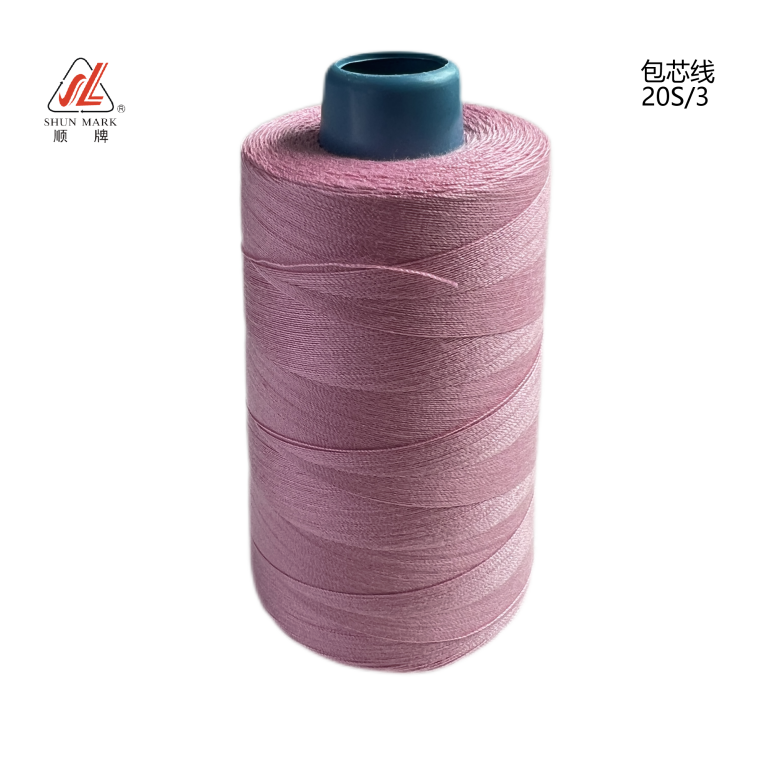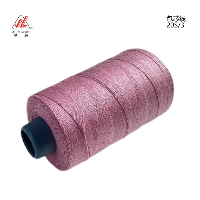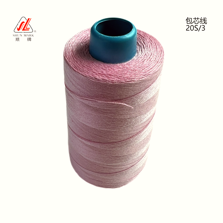 包芯線的工藝:由滌綸聚酯短纖維經(jīng)精梳工藝制成,中間植入一根連續(xù)性滌綸長(zhǎng)絲,以達(dá)到增強(qiáng)拉力的效果。成品由分散染料130℃高溫染色制成。
