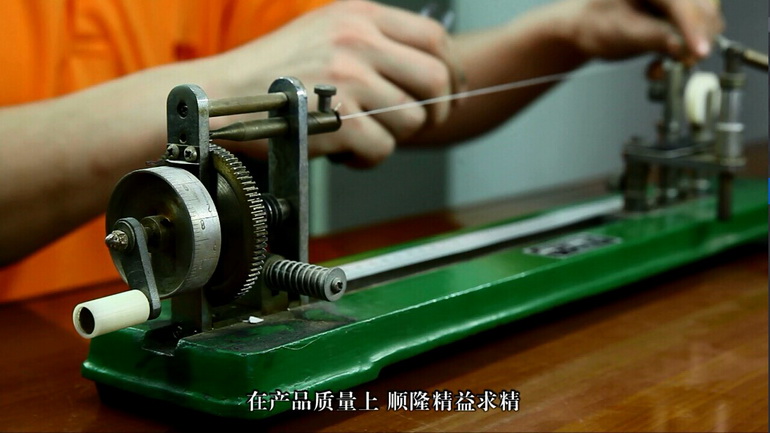 4.5用針穿過(guò)股線,用手順時(shí)針搖動(dòng)捻度儀從左拉向右端,直至線上沒(méi)有捻度為止。