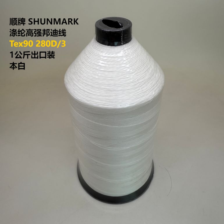 順牌縫紉線廠家直營滌綸長絲高強(qiáng)邦迪線TEX90本白1公斤出口裝