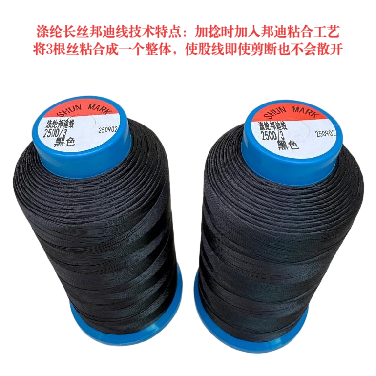 鞋帽皮具戶外制品不散股縫紉線_滌綸長絲邦迪線250D/3黑色高強(qiáng)邦迪線
