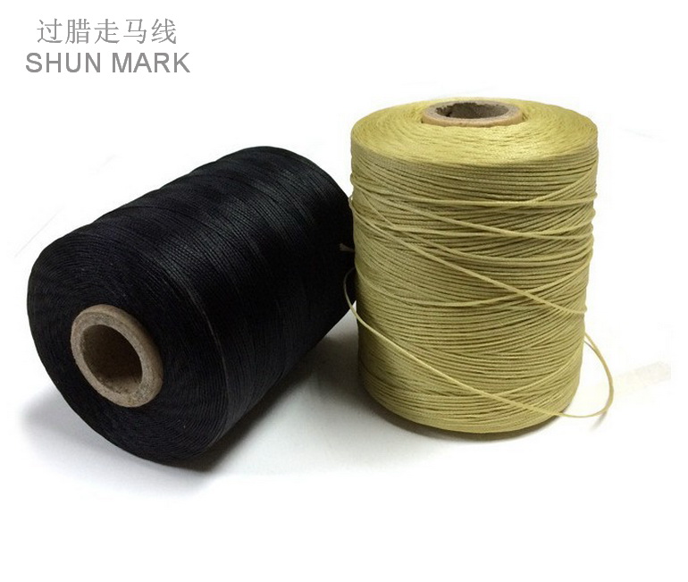 16表示其型號粗細度。過蠟走馬線是在走馬線染色后,單根線經(jīng)過熔化的蠟槽,使走馬線表面包裹一層蠟的生產(chǎn)工藝