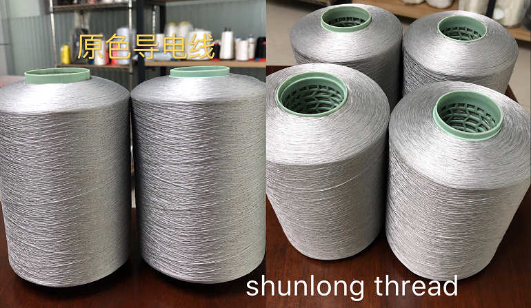導(dǎo)電線是普通紗線在加捻的過程時(shí),植入1-2條不銹鋼導(dǎo)電纖維混紡而成、使普通縫紉線或紗線具備導(dǎo)電(防靜電)的功能。我們先看看導(dǎo)電縫紉線是長(zhǎng)怎么樣子的(如下圖)