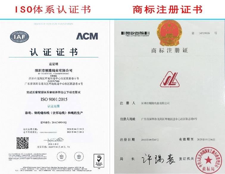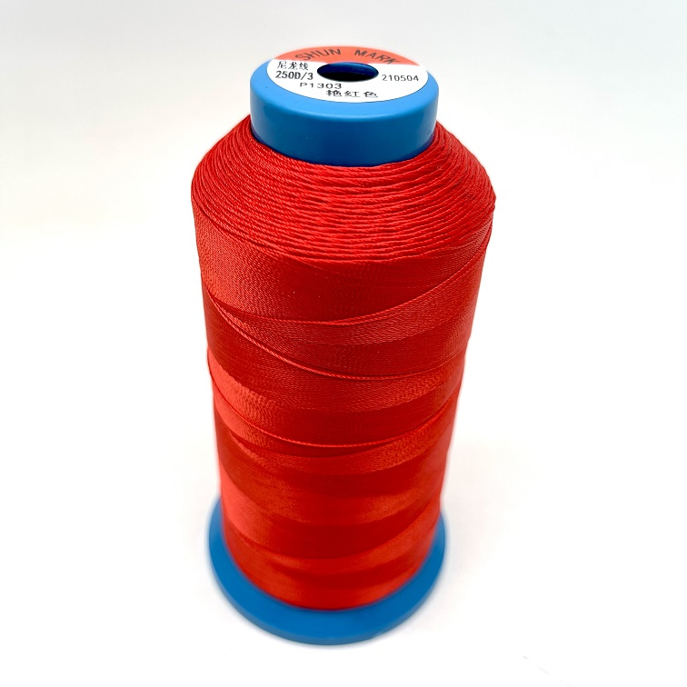 錦綸縫紉線的工藝:采用尼龍(錦綸)單絲拼線,低溫染色,保證縫紉線足夠的延伸率和回彈性。