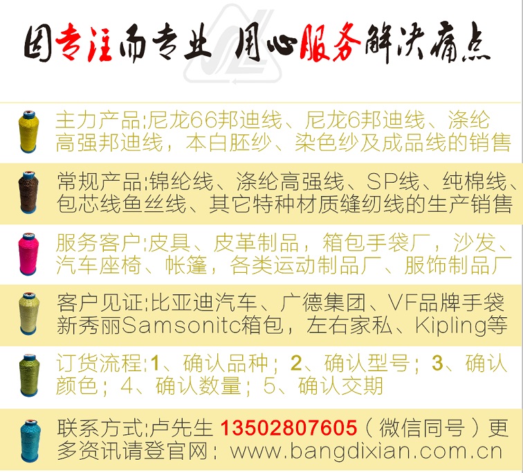 錦綸縫紉線的優(yōu)勢:純尼龍,彈性十足,斷裂延伸率達25-30%;尼龍線回彈性好,當(dāng)尼龍線拉長至4-6%時,能回彈到原來的長度;軟體海綿制品、彈性面料的縫紉線拍檔。