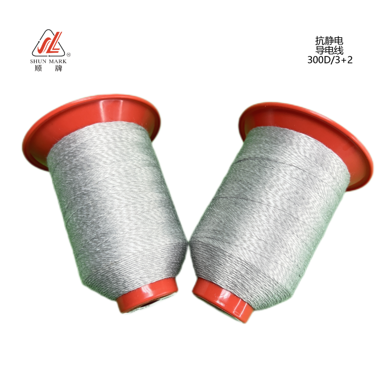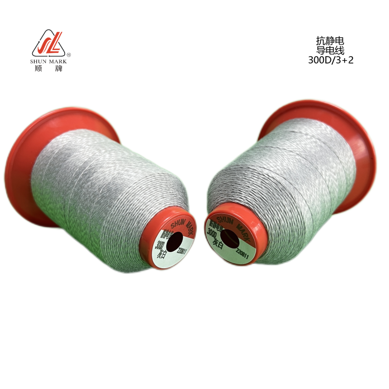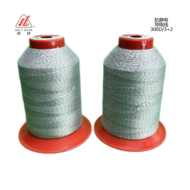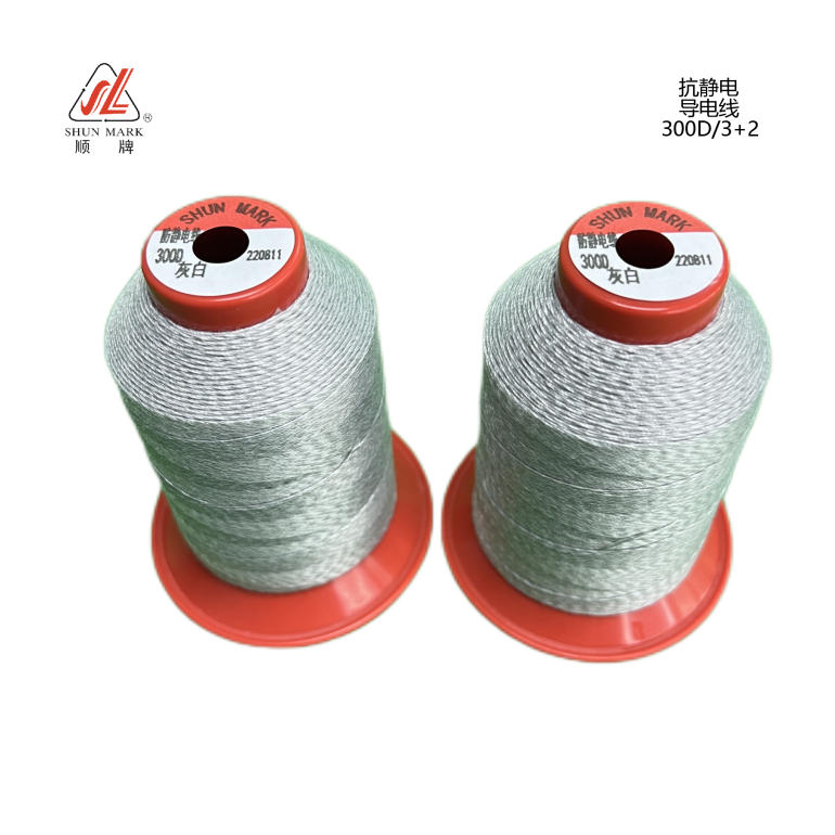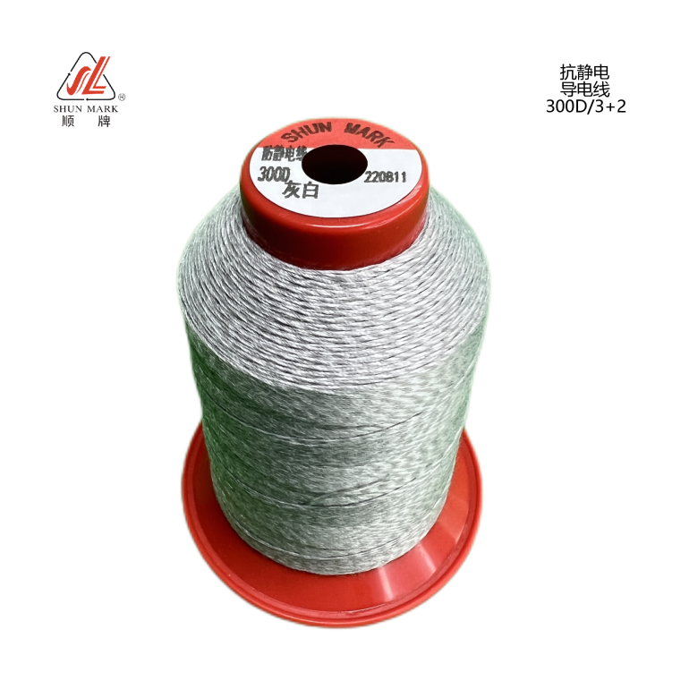順牌抗靜電線300D/3+2滌綸+不銹鋼纖維絲合股導(dǎo)線縫紉線灰白色