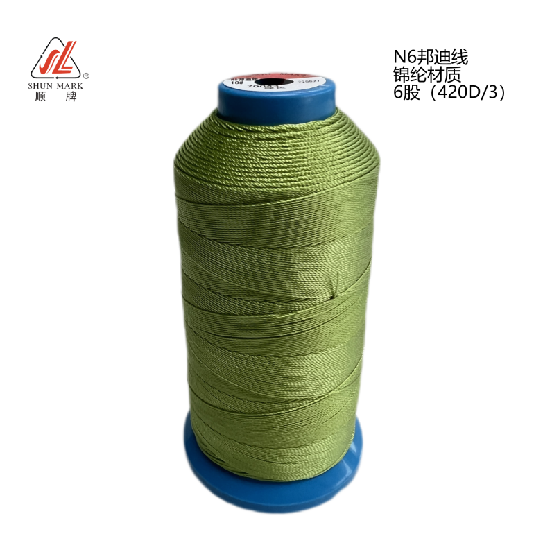 【產(chǎn)品介紹】: 尼龍6邦迪線是一種采用錦綸(尼龍6)連續(xù)性長絲合股捻線、粘合定型、染色和上油卷繞等工藝制程的縫紉線。按照粘合方式的不同,分為內(nèi)邦尼龍邦迪線和外邦尼龍迪線兩大類。