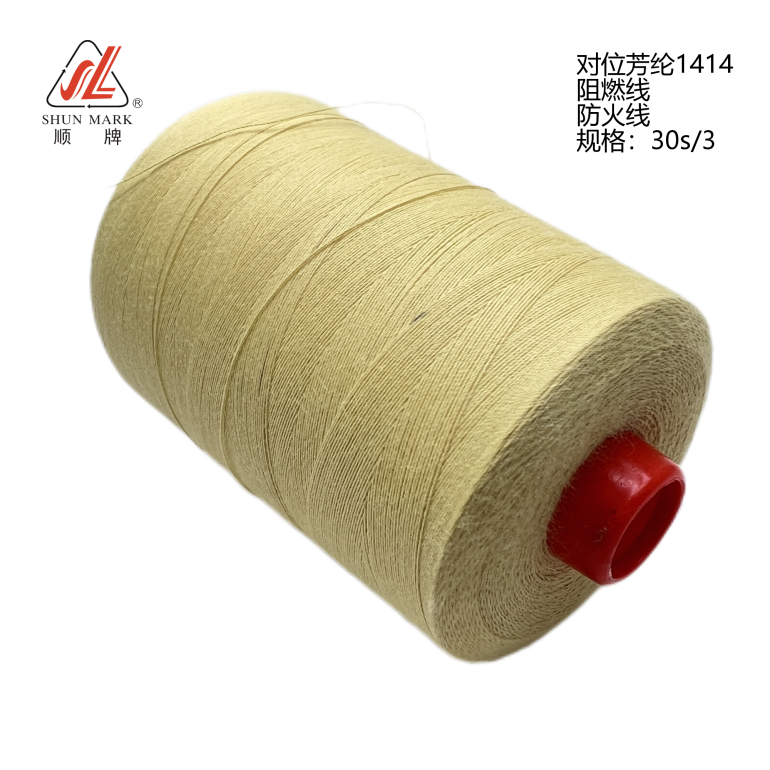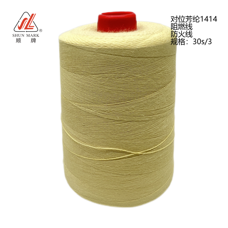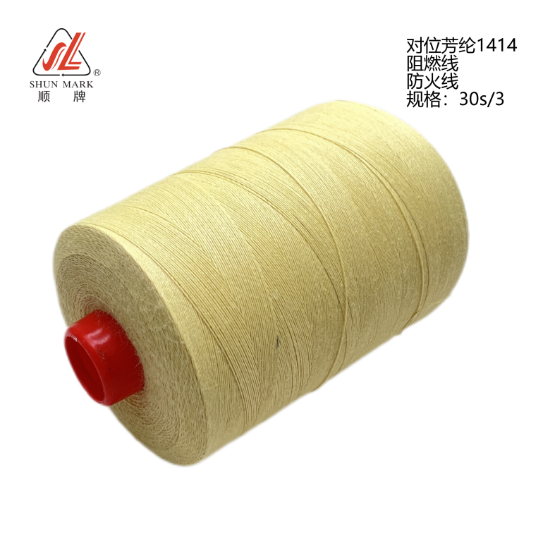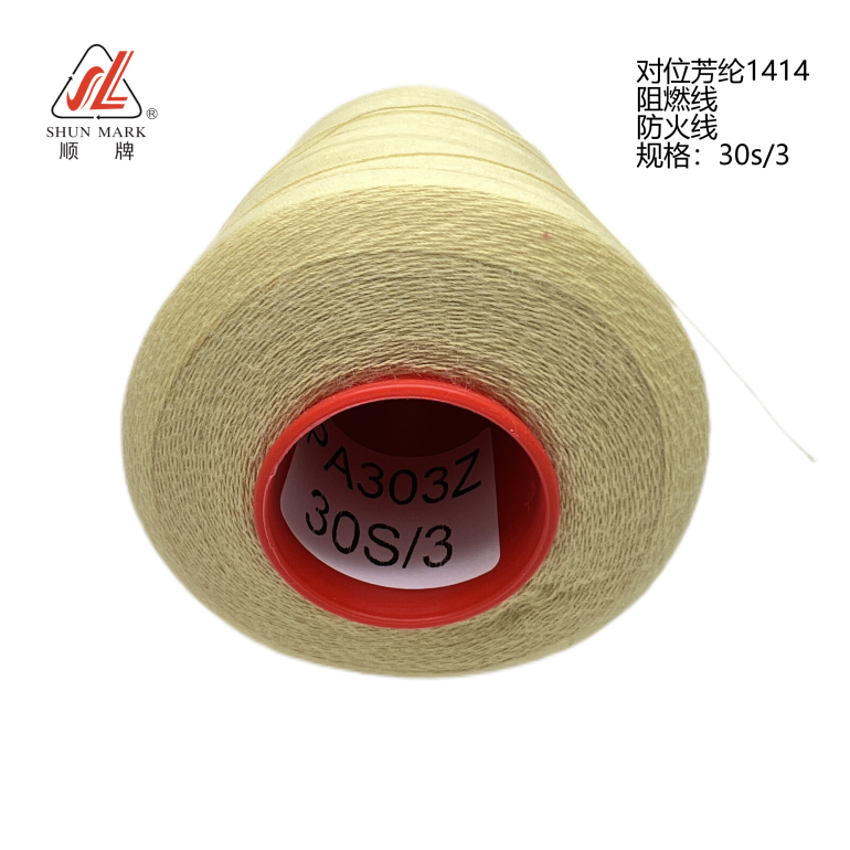 芳綸阻燃線分類型號:芳綸纖維縫紉線分長絲芳綸縫紉線及芳綸短纖縫紉線兩種。長絲縫紉線型號如圖為400D/3,600D/3;1000D/3;1200D/3等;短纖維芳綸縫紉線型號有30/2,40/3,30/3等。阻燃防火線常規(guī)為淺黃色,其中短纖維芳綸線有1313款,可以定做其它顏色。