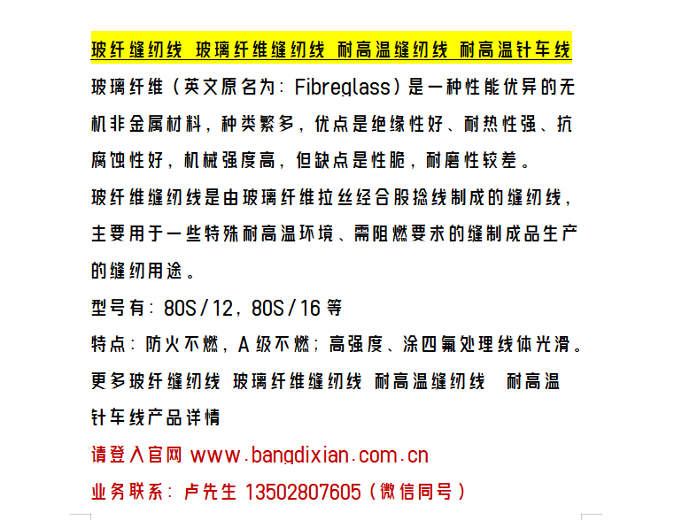 阻燃線(xiàn),防火線(xiàn),玻璃纖維線(xiàn),玻纖縫紉線(xiàn),濾袋縫線(xiàn)