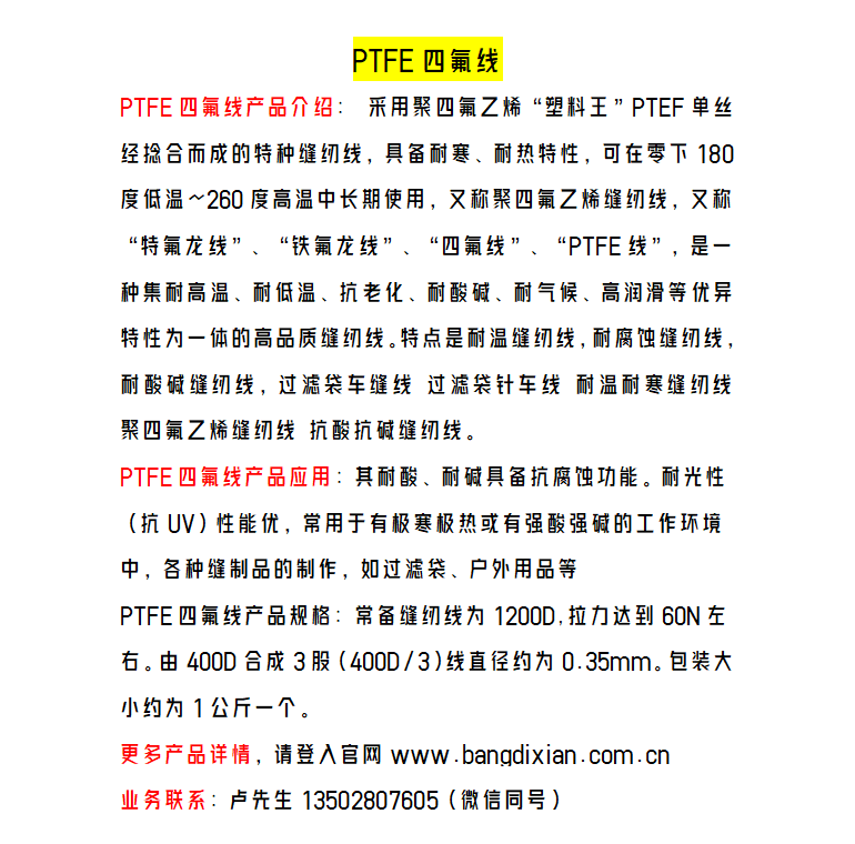 聚四乙烯,PTFE縫紉線,耐酸堿縫紉線,鐵氟龍線,四氟線