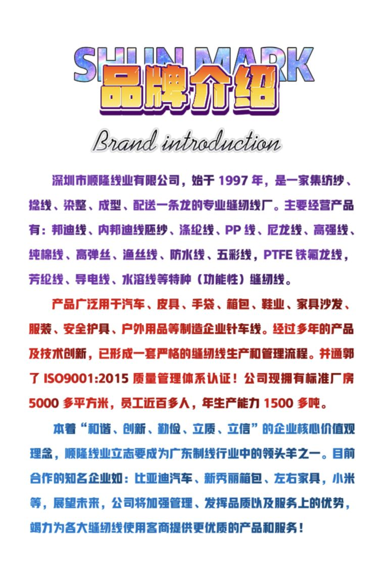 深圳市順隆線業(yè)有限公司盧先生:13502807605電話:0755-28706782傳真:0755-28705180地址:深圳市龍崗區(qū)坪地街道中心社區(qū)富心路4-2號