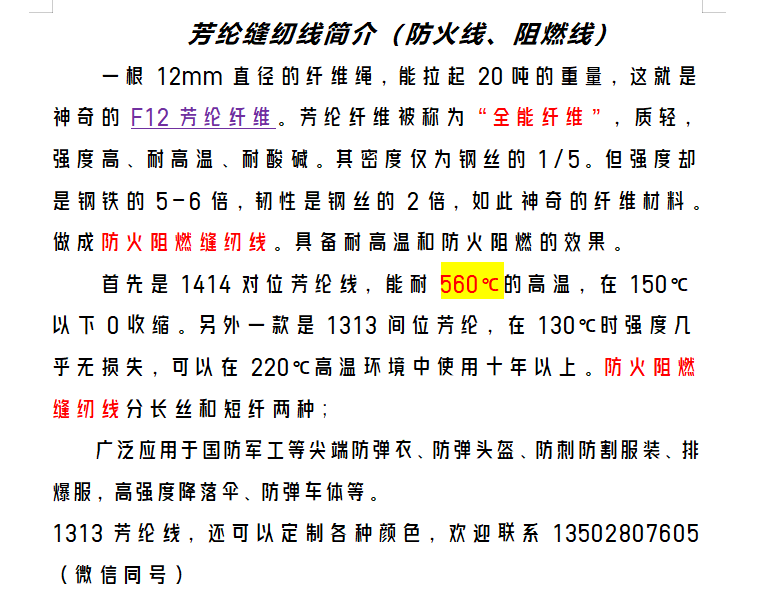 阻燃線,芳綸線,防火線,阻燃縫紉線,防火縫紉線,1414對位芳綸線