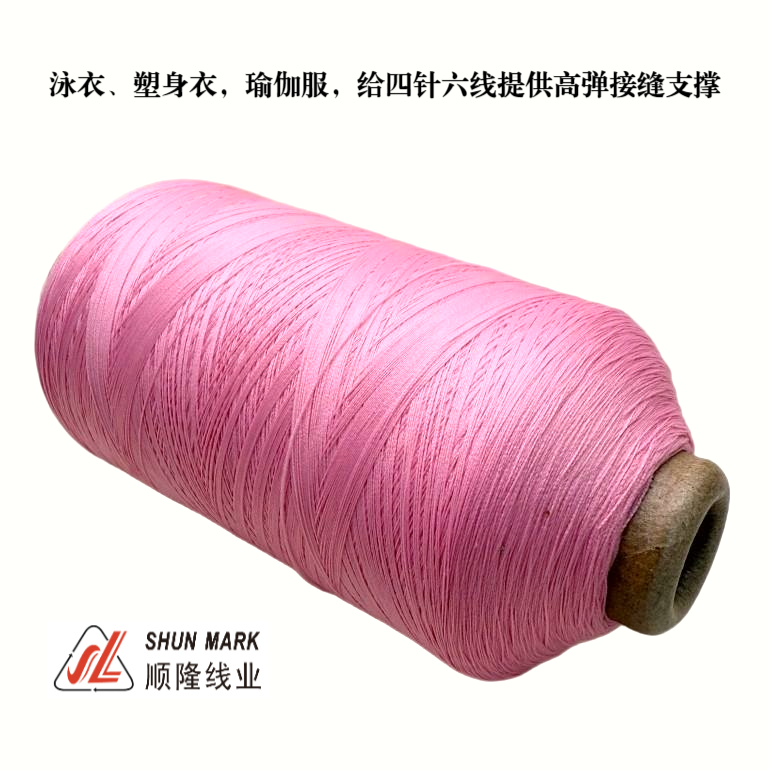 尼龍高彈絲給彈性面料四針六線提供高彈接縫支撐的彈力縫紉線